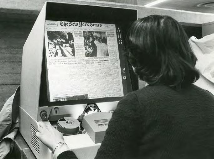 Omtrent slik satt jeg i timevis på Universitetsbiblioteket og sveivet på mikrofilmleseren på jakt etter reportasjen i Aftenposten. FOTO: YOUNES OG SORAYA