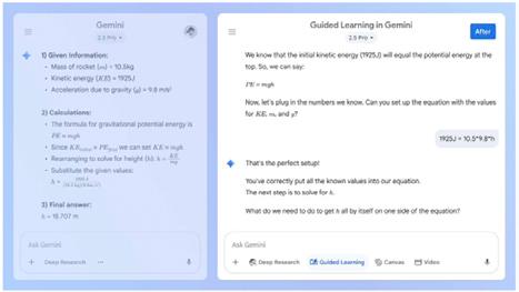 “Guided Learning encourages participation through probing and open-ended questions that spark a discussion and provide an opportunity to dive deeper into a subject,” said Google. “Guided Learning breaks down problems step-by-step and adapts explanations to your needs – all to help you build knowledge and skills.”