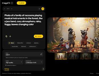 From Google Labs, Image FX (labs. google/fx/tools/image-fx) is an AIpowered creative tool for generating visual scenes. Start with a prompt describing the image to make, then use optional features, including style and aspect ratio. Review images, then when done, download, copy, or share the link to any or all images.
