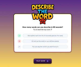 How many words can you describe in 60 seconds? Describe The Word (playdescribetheword.com) provides a word that the player has to say clues to (into a microphone) without saying the actual word. AI then has to guess the word based on these clues.