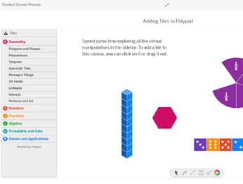 Polypad (polypad.amplify.com) is a mathematical playground filled with a comprehensive and intuitive collection of lessons, activities and virtual manipulatives. Part of Desmos Classroom and Amplify, categories to choose from include geometry, numbers, fractions, algebra, and probability.