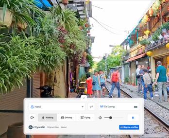 CityWalki (citywalki.com) lets you walk, drive and fly in different cities around the world. From Paris to Perth, Wellington to Warsaw, simply choose your travel mode and start typing a destination in the search box. Choose from more than 200 locations. Music is optional. The original video link is also available.