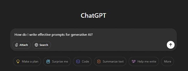 A ‘prompt’ is the term used for the question you ask a generative AI tool. Well-crafted prompts help make the answers more effective and useful. ‘Prompt Engineering’ is the process of crafting a specific, detailed, and instructive prompt to produce a useful response from a large language model. Ways you can improve your prompts are: