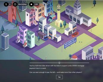 Can you make it in the gig economy? From The Financial Times, The Uber Game (ig. ft.com/uber-game/) challenges players to make it as a full-time Uber driver, with two kids to support, and a $1,000 mortgage payment due in a week. Choose the difficulty level and see if you can earn enough to survive!