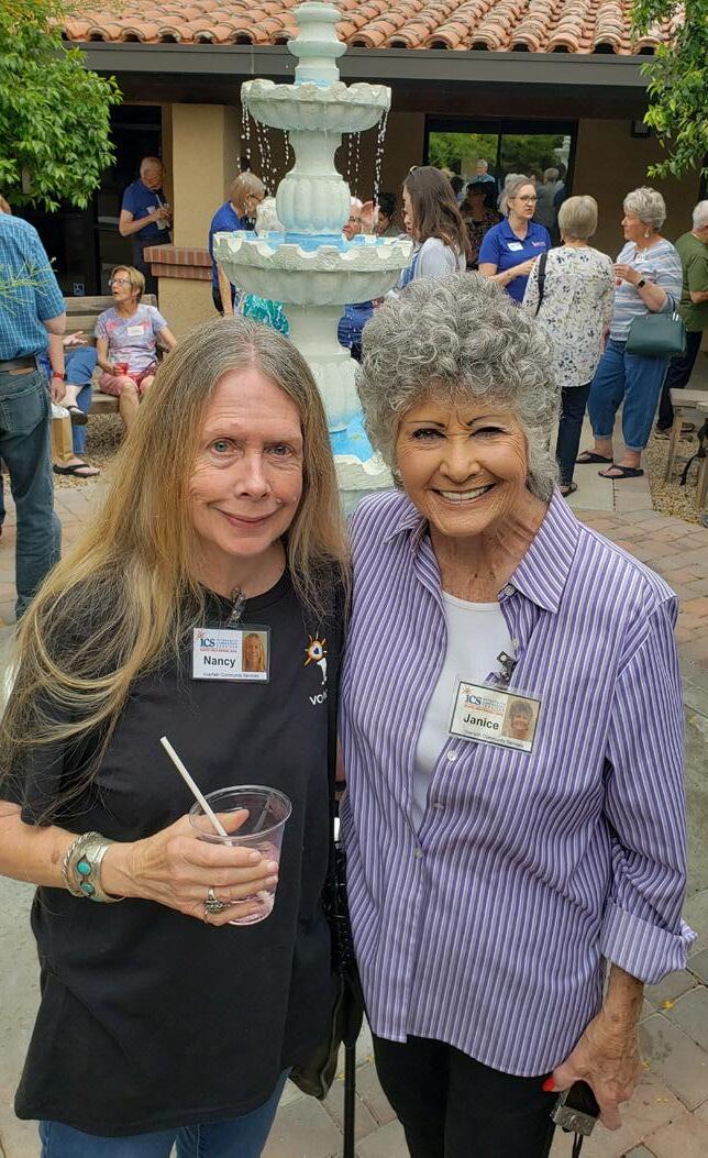 BELOW: The Southern Arizona Arts Guild (SAAG) raised money for ICS's Single Mom Scholars (SMS) program at the May 2nd Art Walk at La Encantada shopping center. Outreach & Partnerships Manager Phil Lynn (left) and SMS Program Manager Rachel Riggs shared info about ICS.