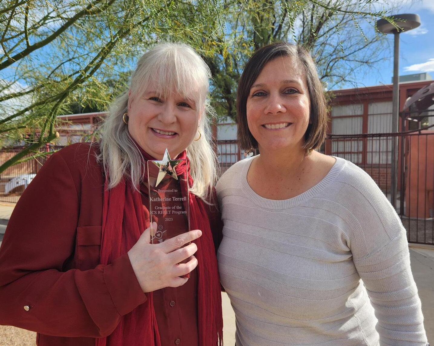 Katherine (above left, with Self-Sufficiency Programs Manager Maryann Moulinet) joined the RESET program in December 2021. She had spent 10 years as the caretaker for her mother, devoting so much time and energy to that responsibility that she lost some of herself and her direction.