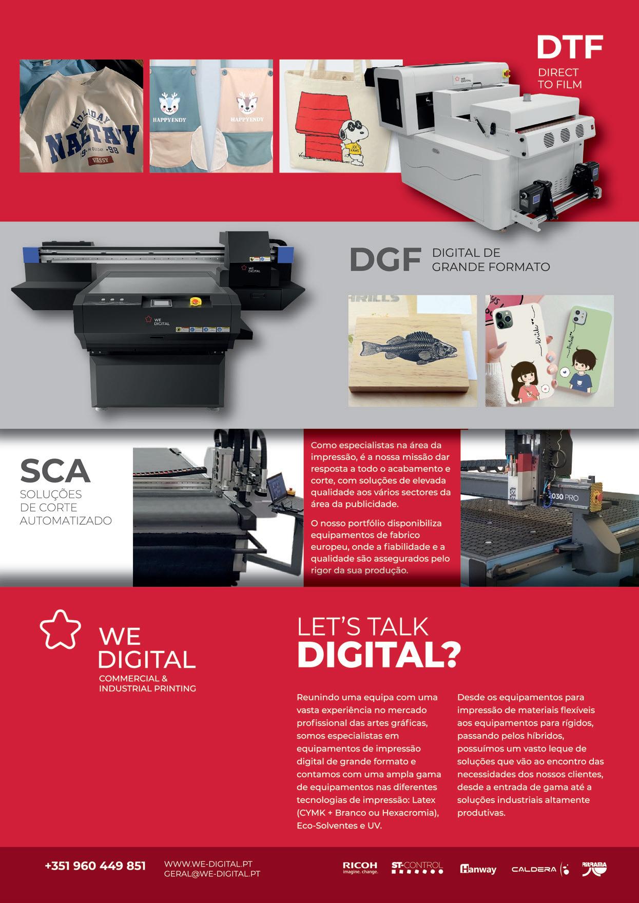 #1 PORTUGAL TRIMESTRAL • NOVEMBRO 2022 EDIÇÃO BY INTERGRÁFICAS RICARDO CABRAL da Signorte fala sobre impressão e sustentabilidade ambiental ALBANO PEREIRA “Na Workstation o investimento em tecnologia tem a máxima prioridade” IMPRESSÃO 3D. QUE VANTAGENS? • EPSON MOSTRA ECONOMIA B.SEARCULAR NA ÁREA TÊXTIL CARLOS SIMÕES DIGITAL DECOR “ESTAMOS MUITO FOCADOS NA ÁREA DO FUTEBOL” GRANDES FORMATOS PORTUGAL