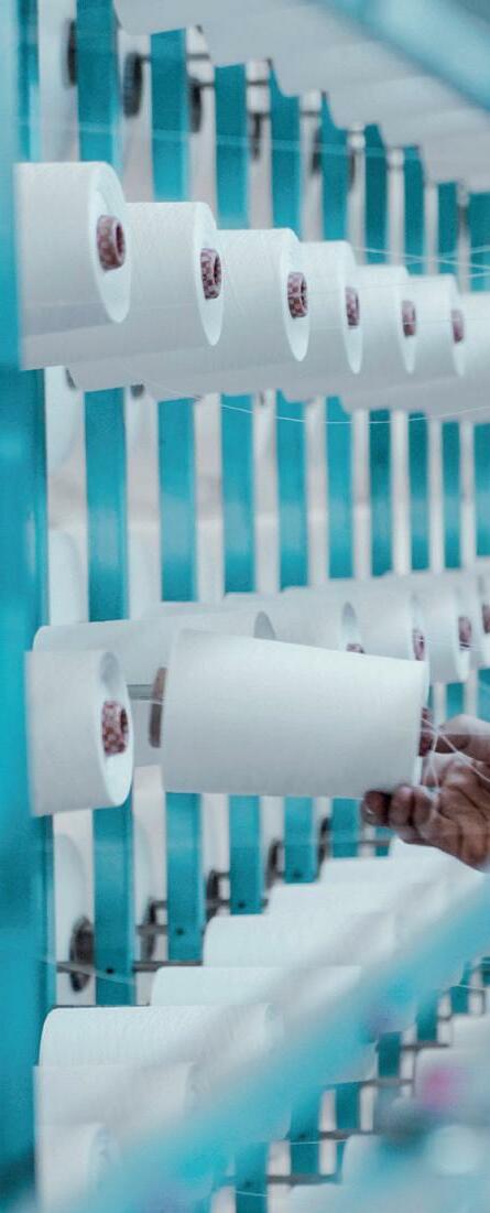PARA ALÉM DO IMPACTO AMBIENTAL QUE IMPLICA, A TRANS FORMAÇÃO PARA UMA ECONOMIA CIRCULAR oferece inú meras oportunidades para o sector têxtil. A produção em circuito fechado na Europa pode gerar um mercado de 6 a 8 mil milhões de euros em vendas com potenciais retornos anuais de 20% a 25% para a indústria de reciclagem e a possibilidade de criar cerca de 15.000 novos empregos até 2030, segundo o novo relatório da McKinsey & Company “Scaling textile recycling in Europe— turning waste into value”, que analisa e desenvolve cenários para o desenvolvi mento de volumes de resíduos têxteis e taxas de recolha e reciclagem até 2030.