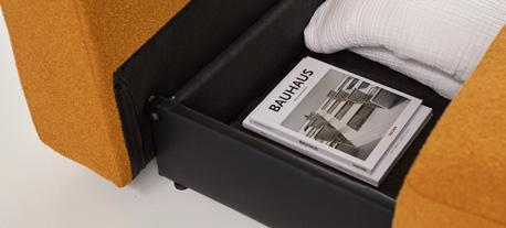 Bed size 145 x 200 cm | No-zag and Pocket Spring comfort with hyper soft foam, see page 157 | Integrated storage | Detachable and washable covers | Optional headrest | Page 20: Shown in 594