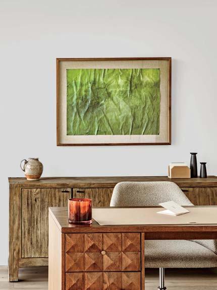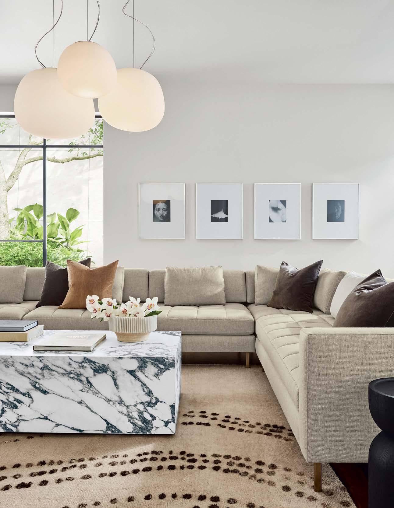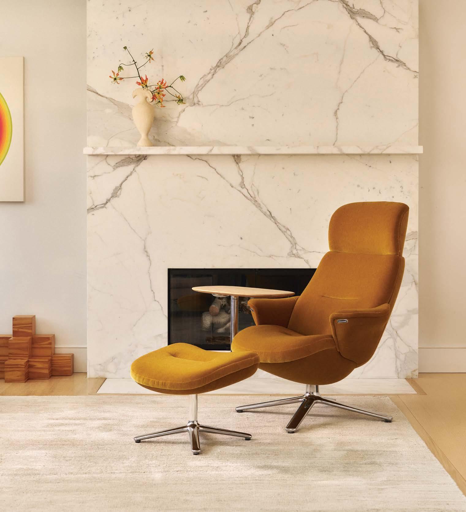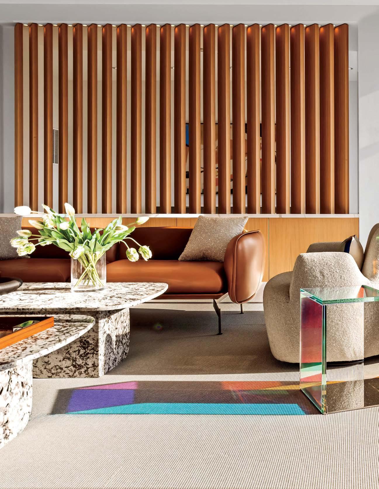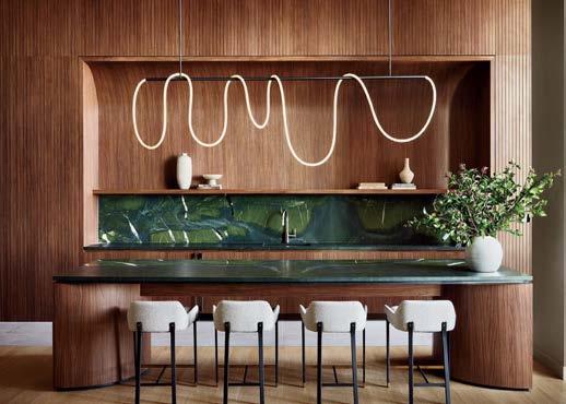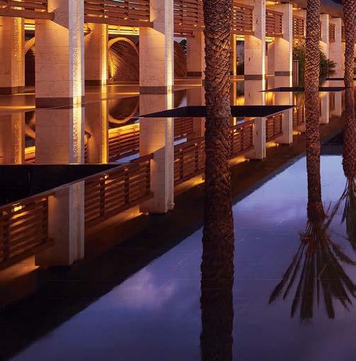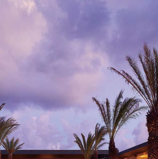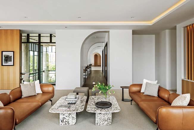 standout When the 136-year-old law firm needed more space, it landed in a location that was top to bottom by the Giants’s highestranking firm, which orchestrated the 40,000-square-foot interiors on the penthouse floor of the Class A office building it designed in 2006. The workplace concept leans in to site context, starting with the glimmering elevator lobby, enveloped by custom aluminum panels that have been CNC-cut and backlit with LEDs for a constellation referencing the project’s Avenue of the Stars location. Farther in are nods to California sunsets and sandy beaches, such as reception’s rhythmic Cipollino Ondulato marble wall and ceiling of lapped drywall and plaster, the boardroom’s coastlinelike carpet (fittingly made of regenerated fishing nets), and a lounge aglow from Disco sconces by Jordi Miralbell and Mariona Raventós. photography Garrett Rowland.