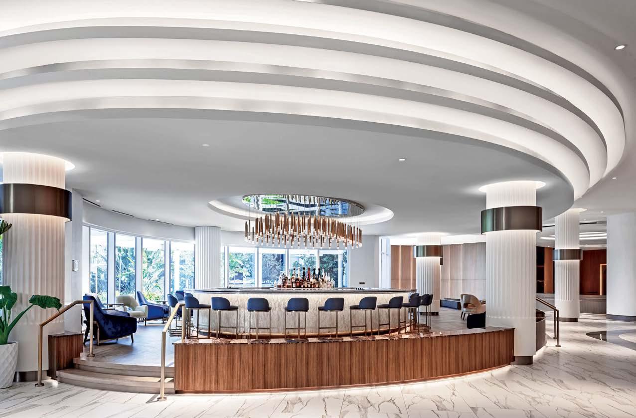 Lush vibes usher in a new era for Pier Sixty Six, a 1960’s resort in Fort Lauderdale, Florida, its interiors vibrantly reimagined by Jeffrey Beers International.