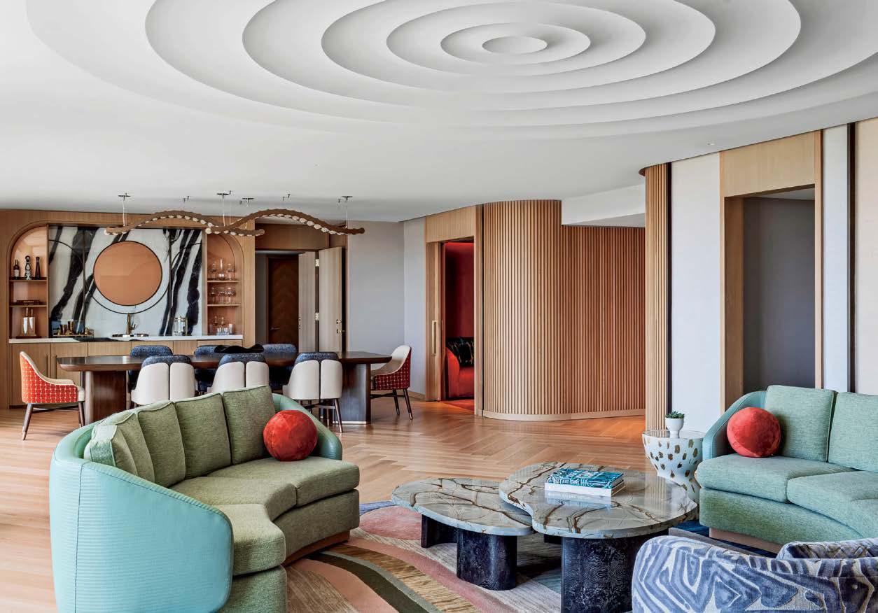 “We took inspiration from the architecture’s taught curves and peeling layers, its sculptural and functional qualities, to formulate elevated, hospitality-rich interiors”