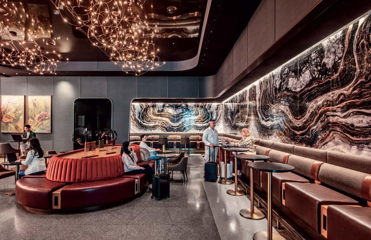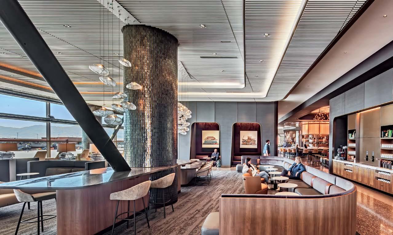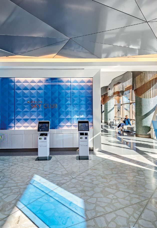 going through security,” Oppenhuizen continues. It should have the usual bar, beverage counters, food service, and phone booths, but also a few surprises. “Delta challenged us to create something that would set this club apart,” she adds.