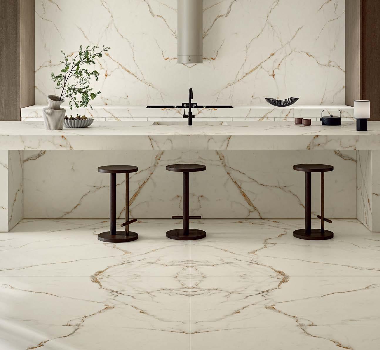 ACHIEVE SEAMLESS, COORDINATED DESIGNS ACROSS MULTIPLE SURFACES WITH EXTRA-LARGE PREMIUM PORCELAIN SLABS