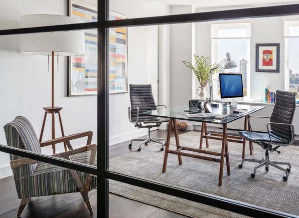 That sparked months of intense conversation during which almost everything was up for grabs. “We kept the cast-iron columns,” Desai says. “But it was pretty much a gut.” The tone is warmer now, thanks to 12-inch-wide blond oak floor planks. Marble floor slabs provide pattern in the bathrooms and lighting strategies inspired by the art of James Turrell enhance the architecture while giving form to the light. The new owner’s kitchen is gourmet-grade, fronted by a massive blackened-steel island. An almost equally wide plate of the metal dominates the back wall, the mesmerizing hovering effect produced by subtle backlighting.