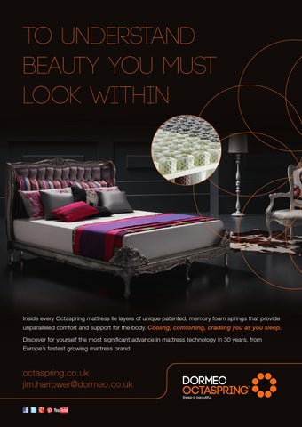 Inside every Octaspring mattress lie layers of unique patented, memory foam springs that provide unparalleled comfort and support for the body. Cooling, comforting, cradling you as you sleep. Discover for yourself the most signiďŹ cant advance in mattress technology in 30 years, from Europe’s fastest growing mattress brand.
