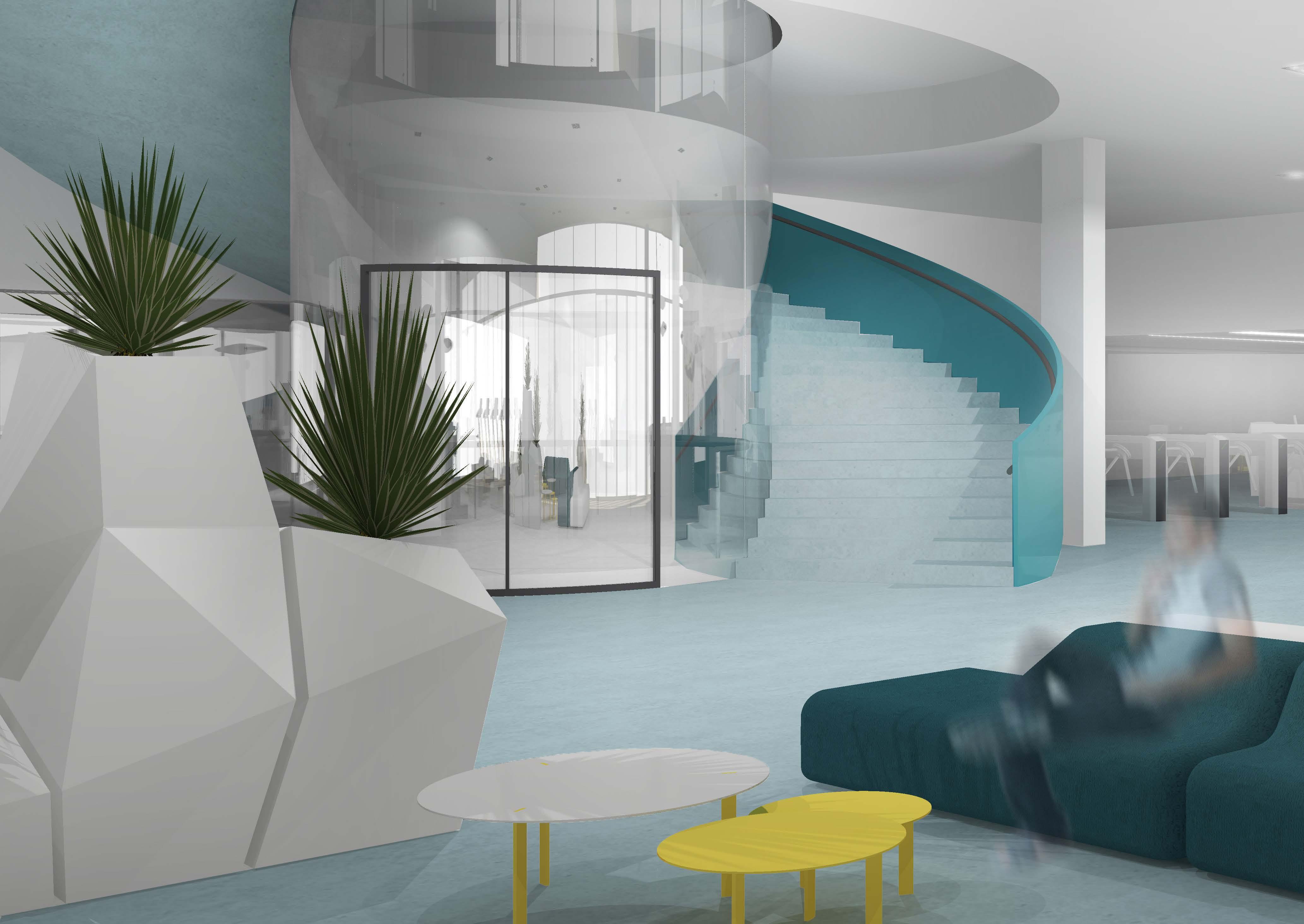 Sveikatinimo centras, tai vieta, kur žmonės ateina puoselėti savo sveikatą, pasisemti jėgų, ugdyti valią, bei atsigauti nuo emocinio nuovargio. Siekiamybė buvo sukurti šviesią, modernią, minimalistinę erdvę, pripildytą gaivių spalvų ir dinamiškų linijų.