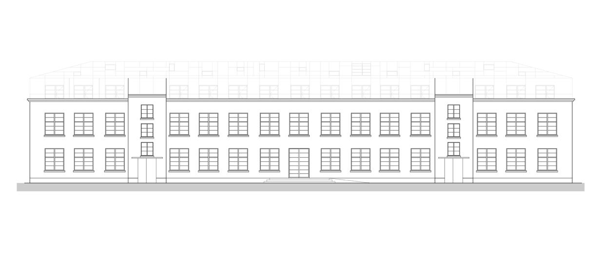 Pietvakarinis fasadas siûloma stogo rekonstrukcija