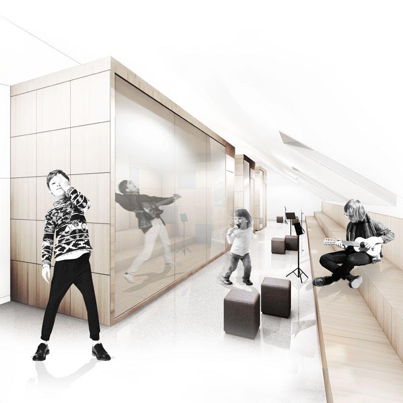 Visos mokyklos veiklos ir ugdomos asmenybės pagrindasmuzika. Šiame kontekste muzika (garsas) tampa jungtimi tarp praeities ir modenumo, vietos duotybių ir kuriamo pasakojimo. Projektuojami kontrastingi interjero elementai tarpininkauja su istorinio pastato vidine architektūra. Kartu šių elementų derinys sukuria darnią aplinką sklisti garsui.