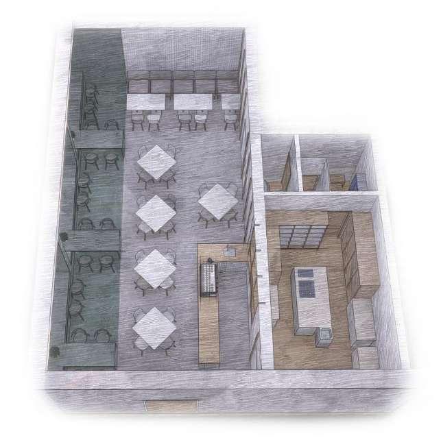 Projektuojama lounge zona su minkštasuoliais, televizoriumi, toliau projektuojama virtuvė, kurioje pacientai galės tobulinti savo maisto gaminimo įgūdžius , bendravimo įgūdžius , galbūt save realizuoti
