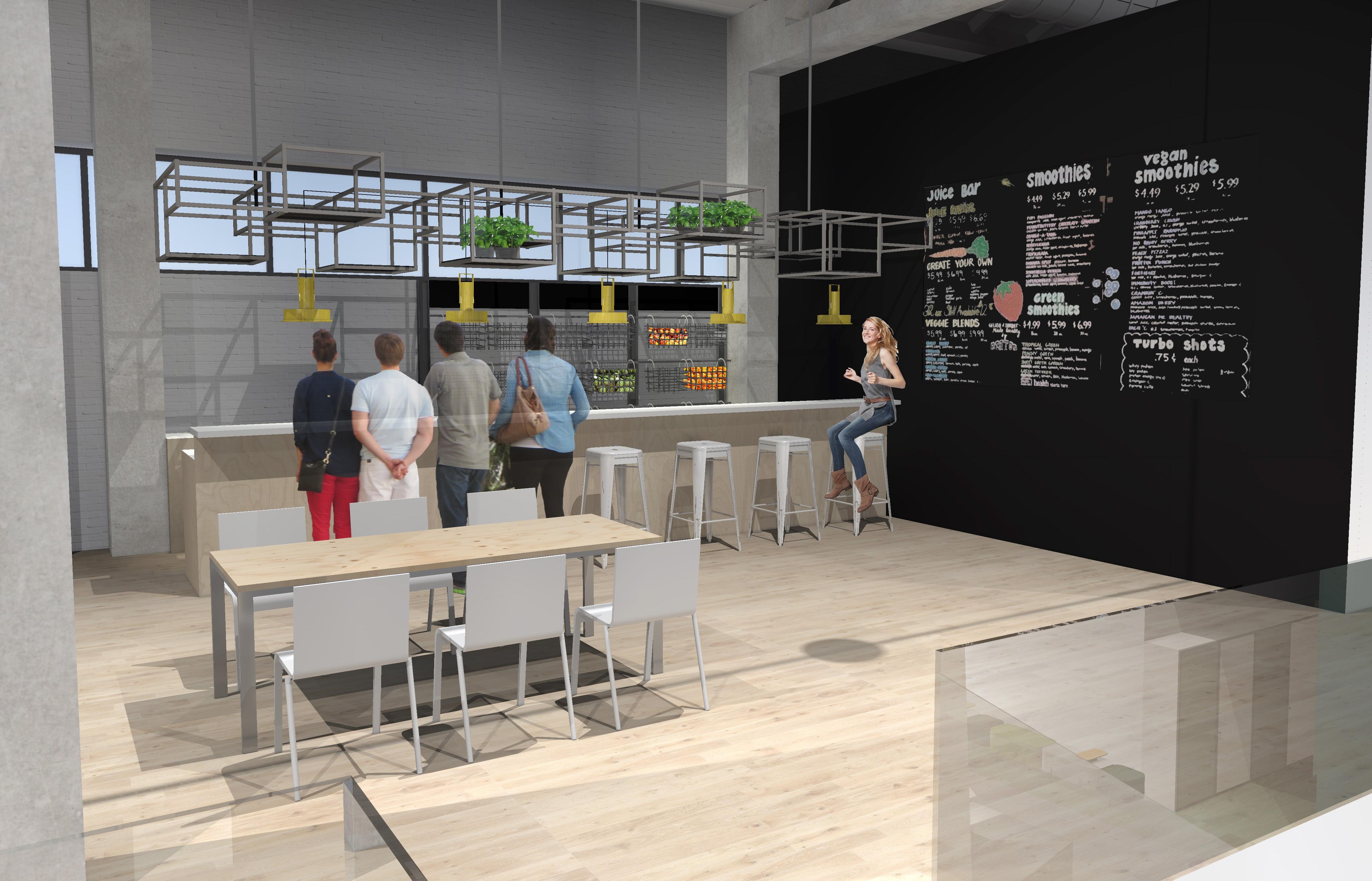 Po treniruotės ar palaukti kol vaikai palaipios yra suprojektuojama kavinė / baras. Bare gaminami šviežių vaisių / daržovių kokteiliai. Dideli stalai sukuria galimybę padiskutuoti po treniruotės grupėje žmonių. Arba galima tiesiog atsisėsti prie baro tipo stalo ir stebėti laipiojiančius žmones.