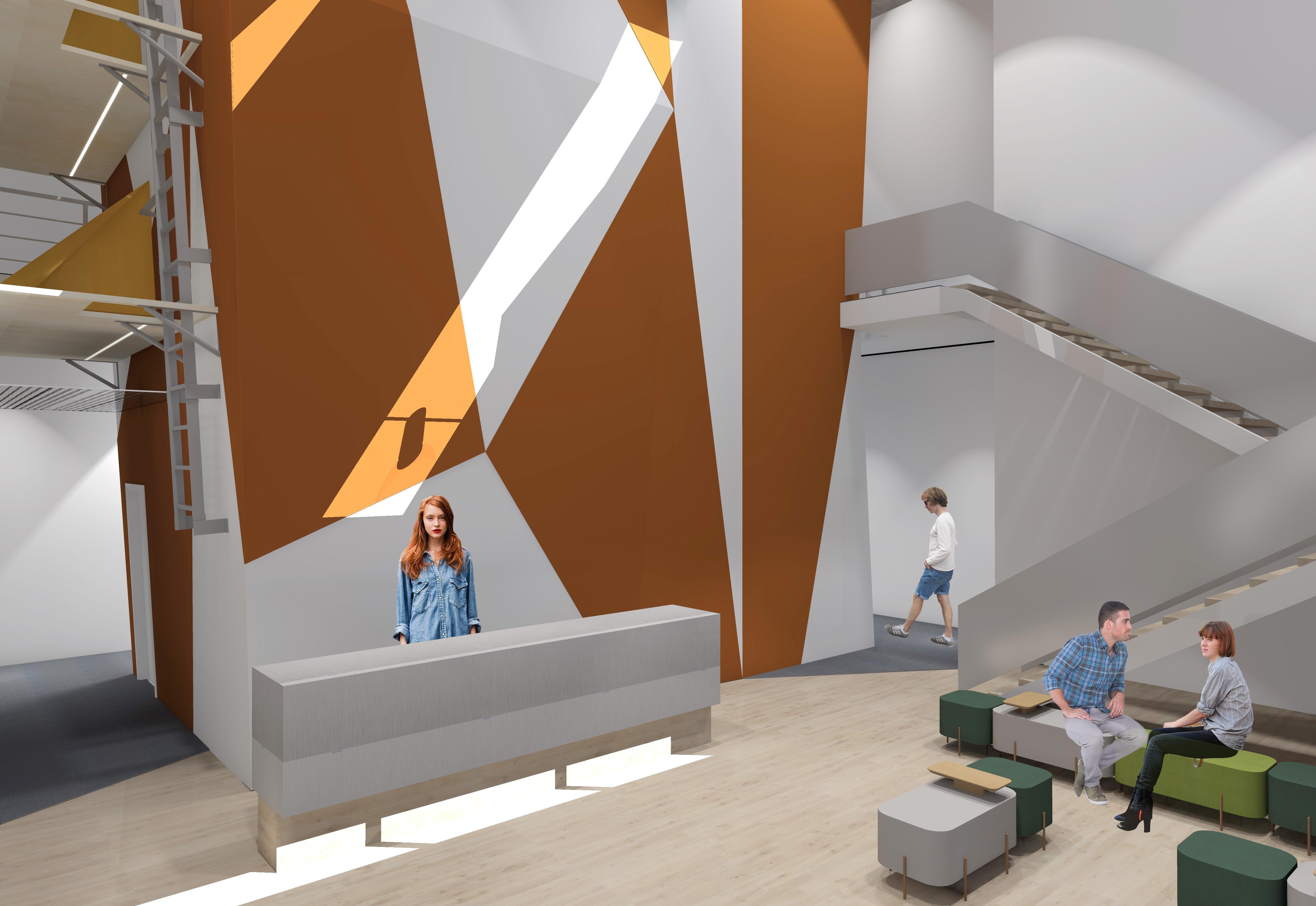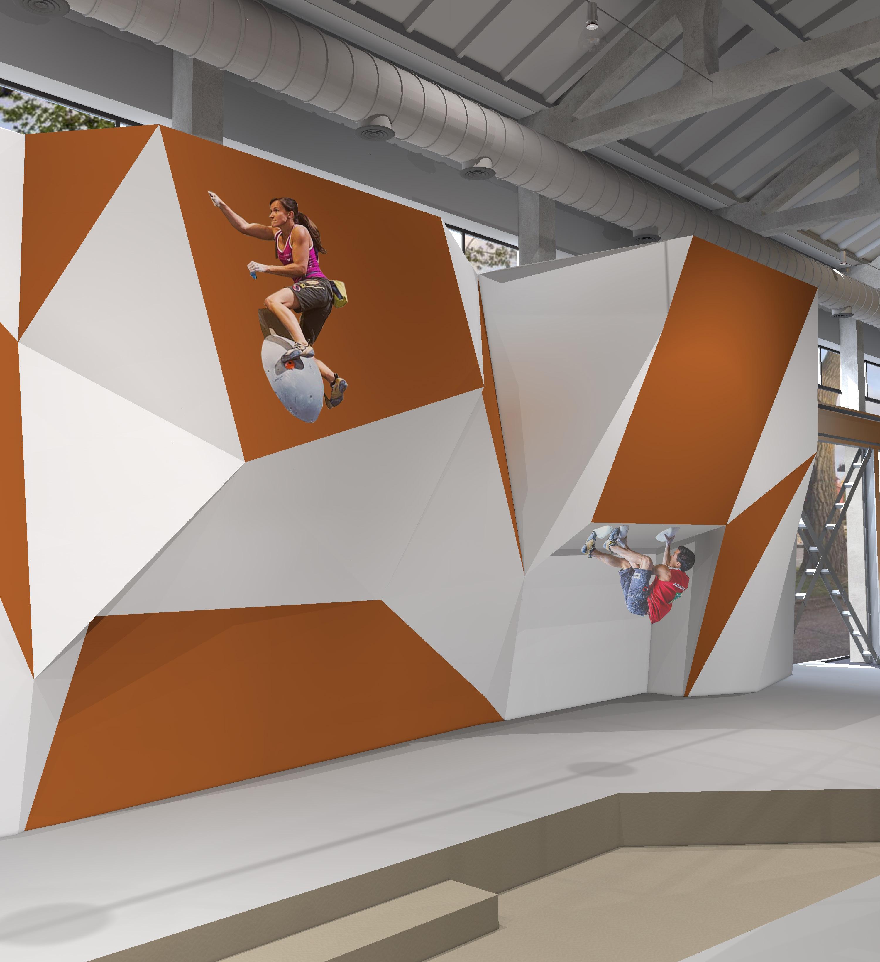 Laipiojimo salė matoma iškart įėjus. Recepciją nuo laipiojimo erdvės skiria aukšta siena su automatinėmis saugomis. Trijų skirtingų aukščių sienos sukuria dinamišką ir laisvą erdvę.