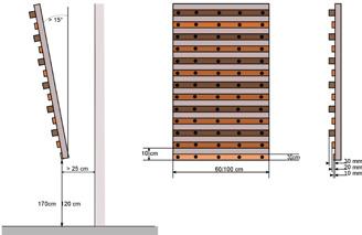 Centrinė ašis laužytos formos, skirtingų posvyrio sienų, tūris. Ant šios struktūros šono pakabintos trys palapinės. Žmonėms kurie nori pasijusti lyg nakotų kalnuose.