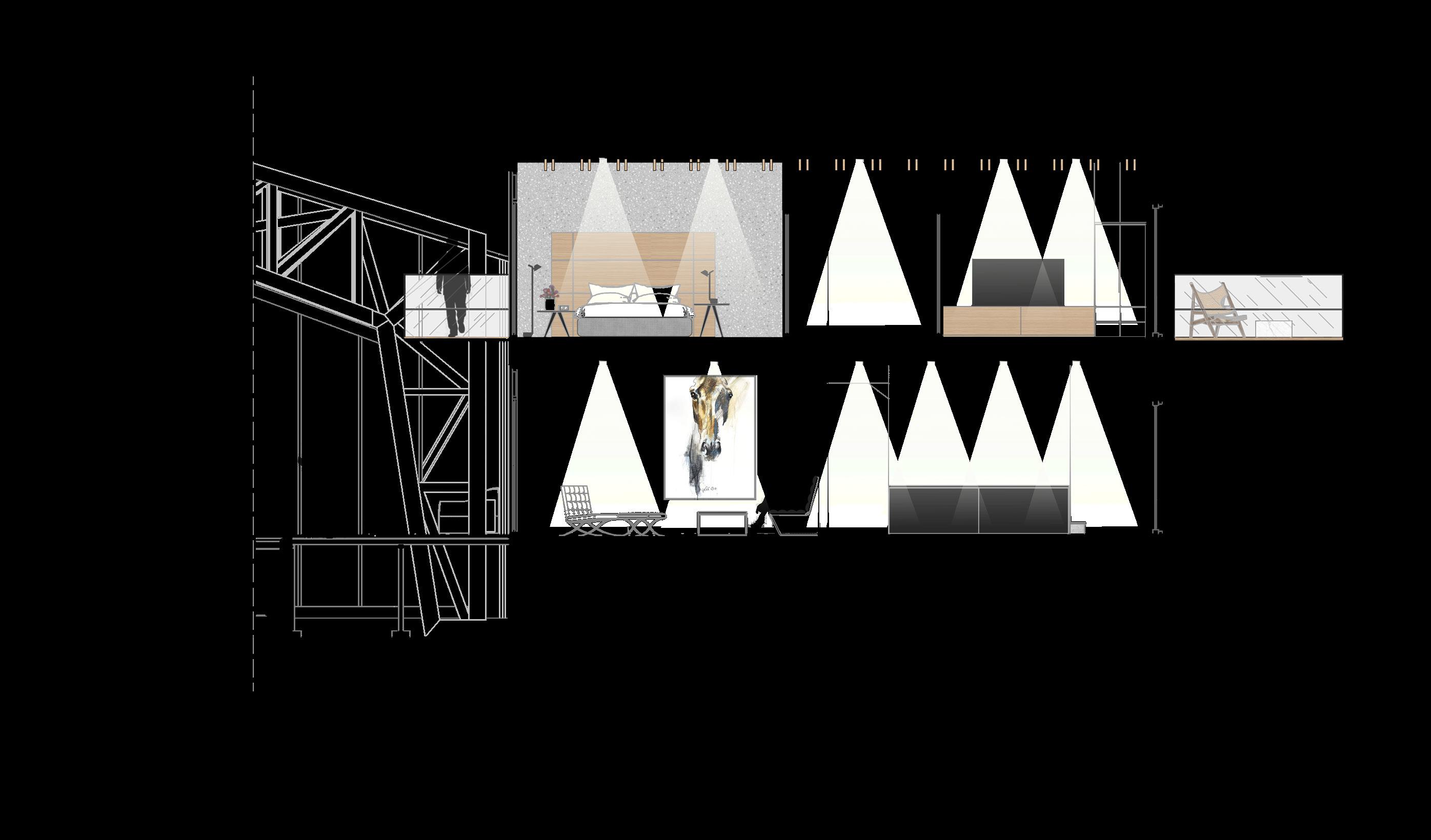 Sukuriama švari ir rami aplinką sportininkų bei sportinių žirgų ruošimui ir treniruotėmis - kuriama min imalistinė estetika, kuri atsispindi organiškomis formomis, saikingu interjerinių elementų naudojimu, neutraliomis spalvomis.