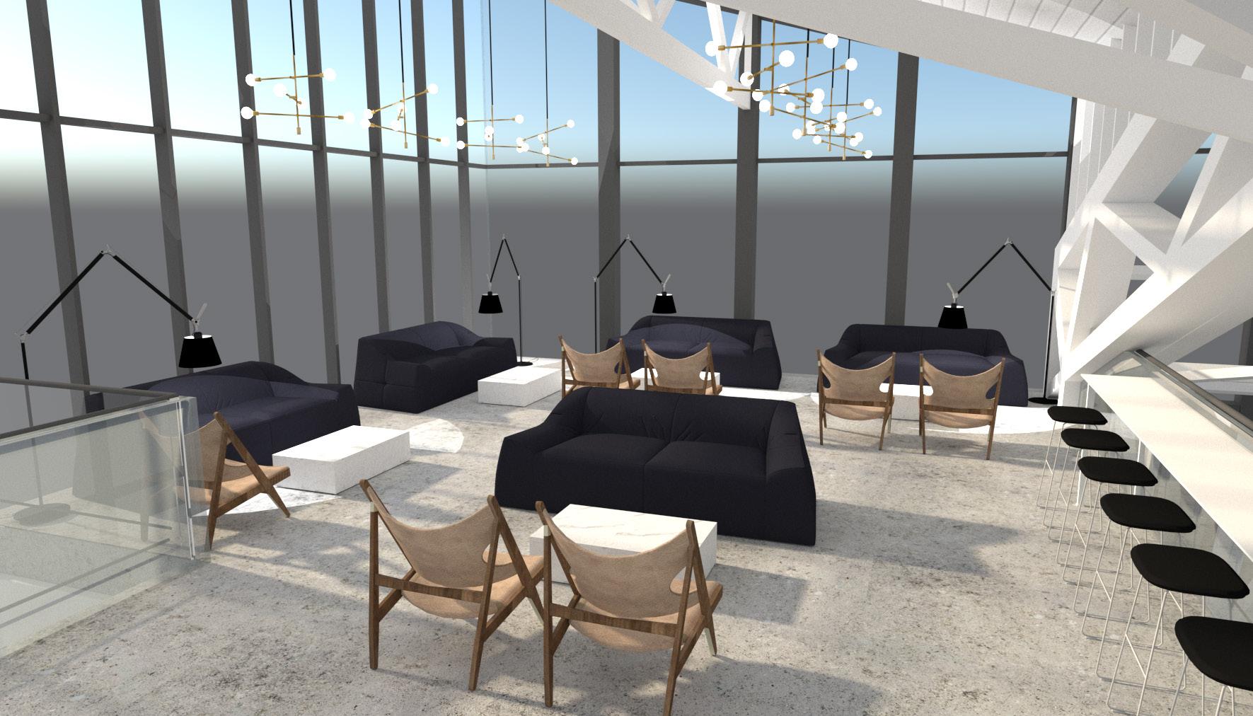 Išlaikant vientisumą pagrindinis apšvietimas projektuojamas nuo lubų LED šviestuvais kaip ir virš arenos, o jaukesniam zoniniam apšvietimui pastatomi toršerai ir pakabinami “west elm” šviestuvai. Įrengiamas specialus laiptų apšvietimas. LED šviestuvai nešvaisto elektros energijos ir neskleidžia mūsų akimis nematomų ir net kenksmingų spin dulių, o taip pat neskleidžia šilumos.