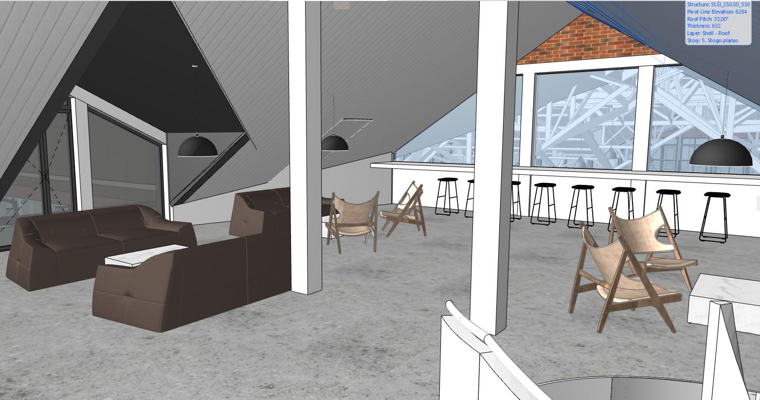 “ARTEMIDĖ” švi estuvas. Modelis: “Tolomeo”. Pastato mas loung’e zonoje