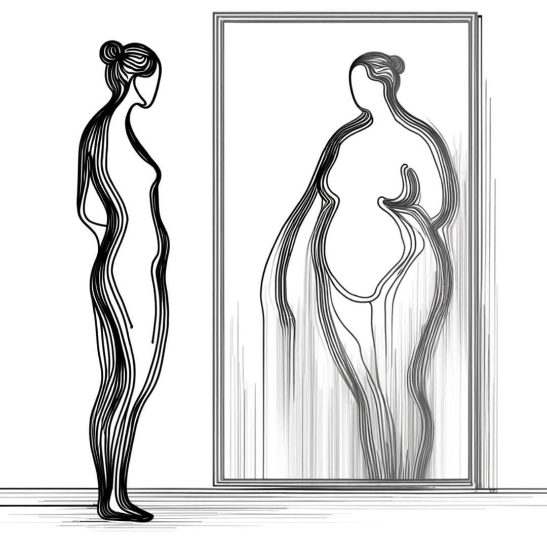 1 pav. Abstrakcinis kūno paveikslas tinkamas temai valgymo sutrikimas (autorės iliustracija, nupiešta iArtbook programėlyje, 2024)