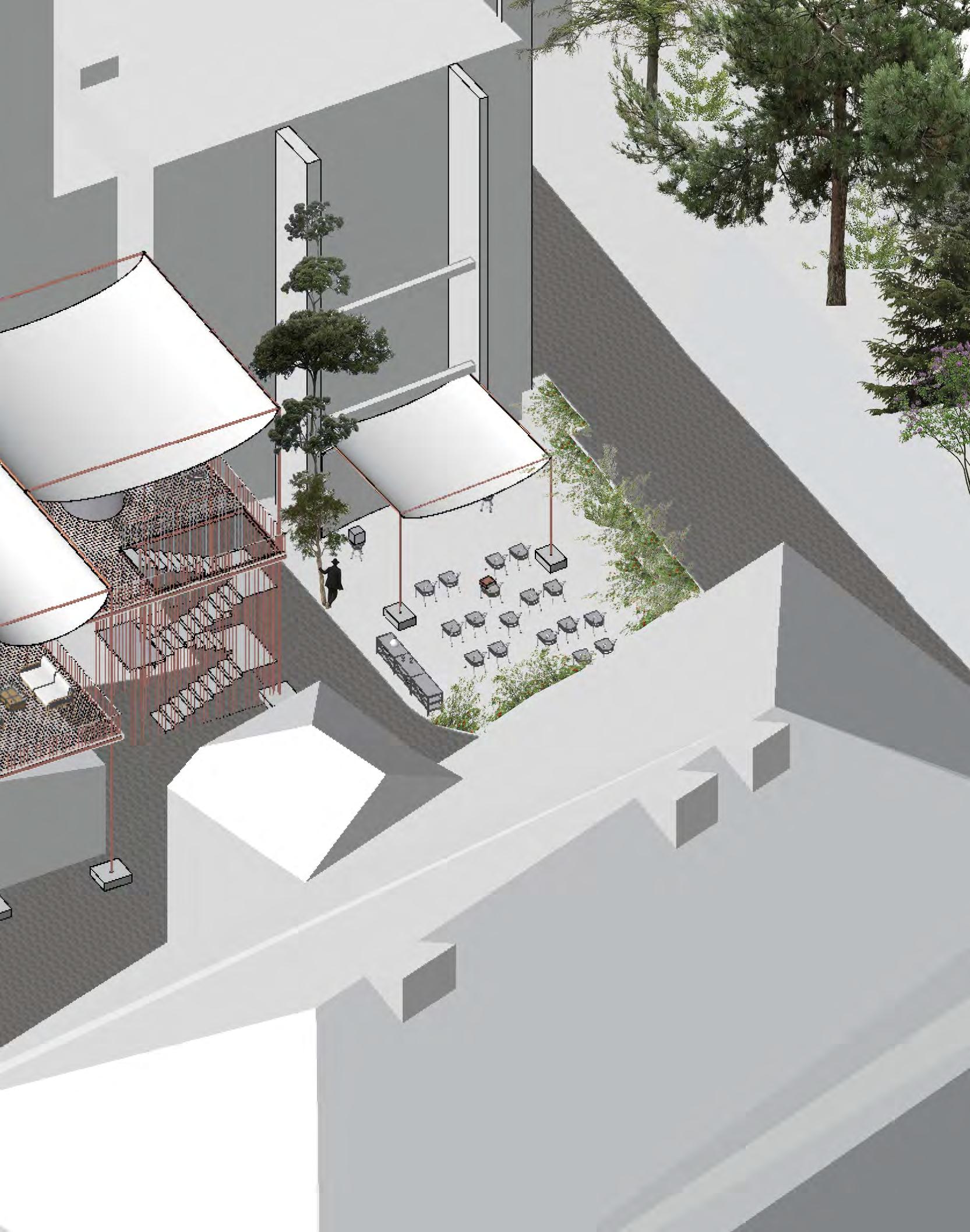 Within the discovered urban chambered porosities [voids] of the city, three leisure infrastructures/ platforms are created. In developing potential future scenarios for these locations, I draw on the philosophy of open-source/transparent activities, the importance of voidness as a fundamental component of spatial design, and the factor of the human dimension in urban environments. The defining feature of open-ended activities is a number of distinct modes of use, both at the community and societal levels. These include the freedom to choose zoning and the purpose of such activities. The project proposes potential usage scenarios for the objects, although the activities are not pre-programmed for specific permanent functions. This implies that individuals have the capacity to initiate practices and collaborate in the infrastructures that are created as a result of their own decisions.