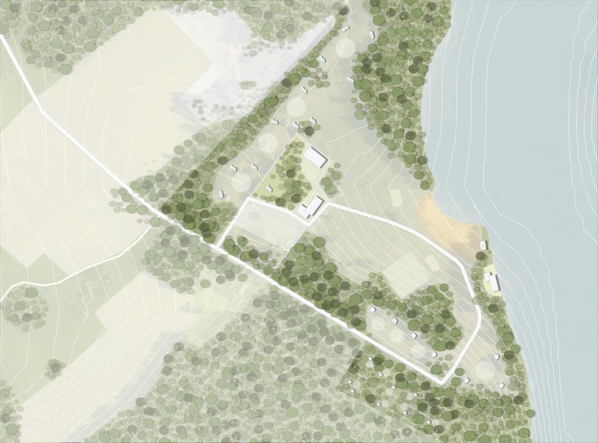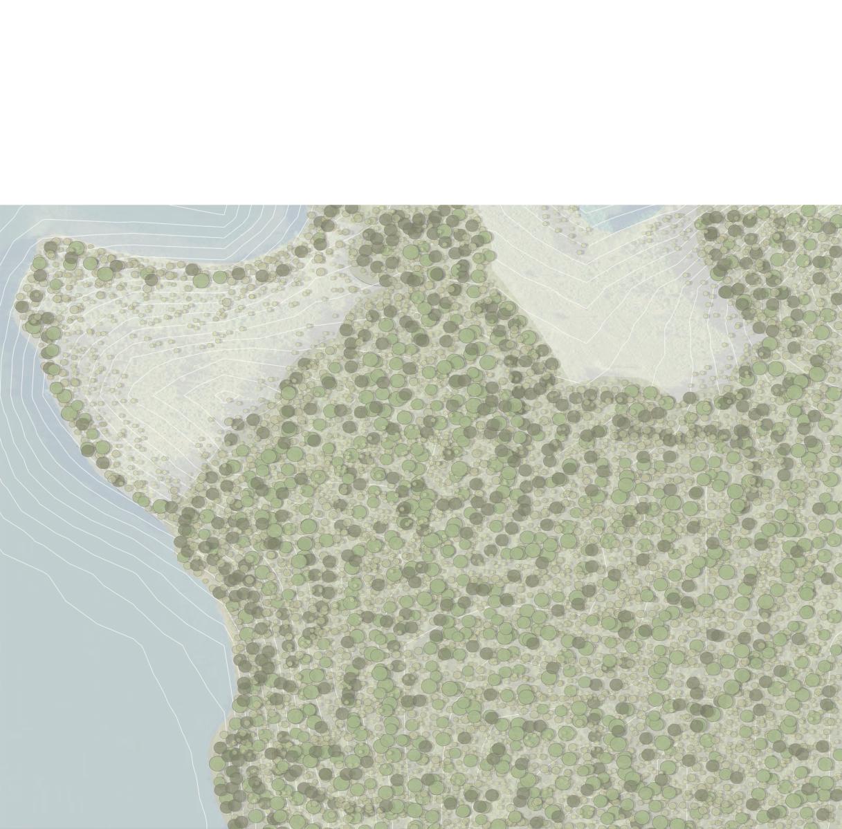 Trečioji zona, pati ramiausia - miškas. Šioje zonoje poros ras privatumą, bei miško suteikiamą ramybę. Mašinų aikštelė sukoncentruojama iš dviejų į vieną vietą, prie pat įvažiavimo - paliekant visą vizualinį triukšmą ir taršą pačiame pakraštyje teritorijos. Kelias aplink Daugų salą paliekamas - patogiam daiktų privežimui.