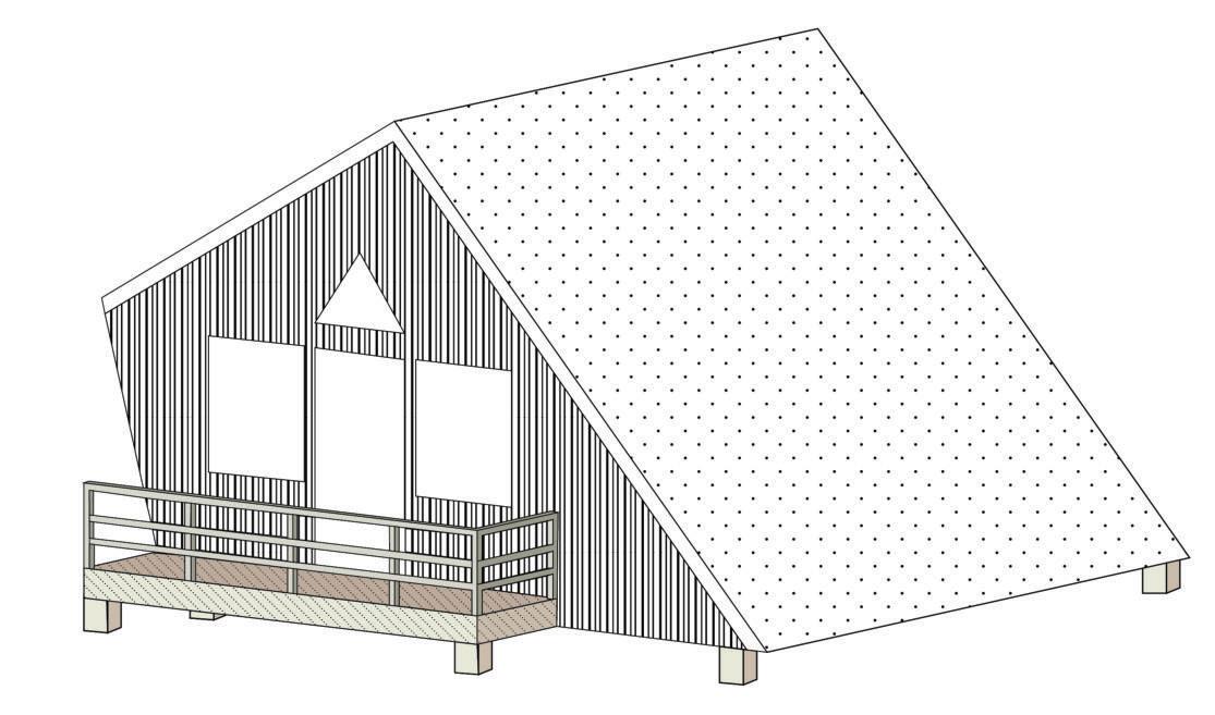26m² namelis su antresole (užima 20m² žemės ploto) projektuojamas maksimum šešių asmenų šeimai, su galimybe pritaikyti ir mažesnei šeimai. Multifunkcinė erdvė apima atsilenkiančias dvi dviaukštes lovas ir stalą.