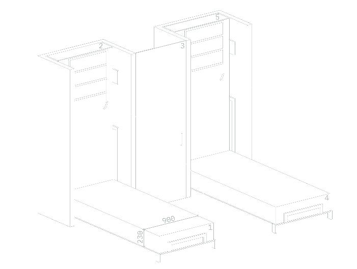 21 1 - Atlenkiama 2000 x 900mm lova 2 - Atlenkiama 2000 x 900mm lova 3 - Besiūlės durys 800 x 2100mm Baldo detalizacija 4 - Atlenkiama 2000 x 900mm lova 5 - Atlenkiama 2000 x 900mm lova Atlenkiamos dviaukštės lovos ir berėmių durų detalizacija
