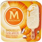 Magnum double stachaser chocolate, caramel, popcorn flavour/Double Sunlover White Chocolate, Mango, Coconut