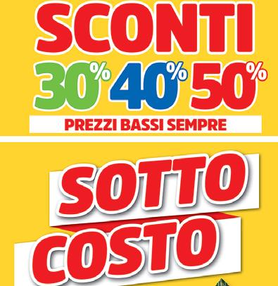 SOTTO 6 L’OFFERTA SOTTOCOSTO È CARATTERIZZATA DA PRODOTTI VENDUTI AD UN PREZZO INFERIORE A QUELLO D’ACQUISTO, AI SENSI DEL DPR DEL 06 APRILE 2001 NR. LE QUANTITÀ MINIME DISPONIBILI IN OGNI NEGOZIO SONO SEGNALATE I QUANTITATIVI ACQUISTABILI SONO LIMITATI AL CONSUMO FAMILIARE PERTANTO L’OFFERTA È VALIDA PER I PRIMI 2 PEZZI, I SUCCESSIVI SONO A PREZZO PIENO. Alla promozione * LE PROMOZIONI NO FOOD POTREBBERO NON ESSERE PRESENTI IN TUTTI I PUNTI VENDITA 23.6” 199,00 115,00 -42% * LG 24TL510V TELEVISORE LED CON SCHERMO 23,6" HD - hdmi - decoder digitale terrestre dvb-t2 - decoder satellitare dvb-s2 - ingressi hdmi - usb multimedialeclasse di efficienza energetica f SOTTO COSTO 6” 4GLTE 89,90 39,90 -55% * BRONDIMIDNIGHT SKY SMARTPHONE DUAL SIM 4G LTE BLUETOOTH WI-FI •gps integrato + agps •display 6.0" lcd hd ips •touchscreencapacitivo multitouch •fotocamera 8 mp (autofocus), flash - fotocamera frontale 5.0 mp - memoria 2gb ram + 16gb memoria interna espandibile con microsd fino a 64gb • sblocco con il volto •connettoretype-c - cuffie con microfono incluse - sistema operativo android11 go SOTTO COSTO 119,00 89,90 -24% * SINGER SVP1408 MACCHINA DA CUCIRE AUTOMATICA con 15 operazione di cucito braccio libero per cuciture tubolari sistema di infilatura a prova di errore cover di protezione a corredo SOTTO COSTO 99,00 49,90 -49% * DCG BS1025/6 TWIST ASPIRAPOLVERE ROBOT - ricarica
