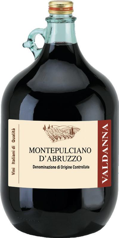 VALDANNA DAMA MONTEPULCIANO D'ABRUZZO DOC 5 l Vino rosso rubino intenso con lievi sfumature violacee. Profumo vinoso, tenue e gradevole. In bocca si presenta asciutto, morbido e sapido con un finale leggermente tannico. Si abbina molto bene con piatti sostanziosi e con cari rosse come agnello e capretto. Temperatura di servizio consigliata: 16-18°C.