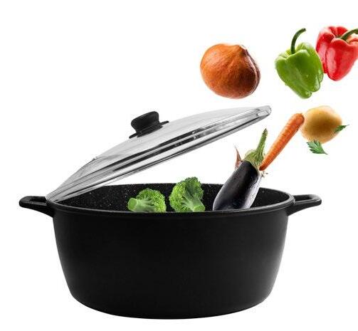 CASSERUOLA CHEF XL CON SCATOLA REGALO Alluminio pressofuso di Alta Qualità con Impugnature Silicone e Coperchio Vetro. Adatta alla Cottura Induzione.