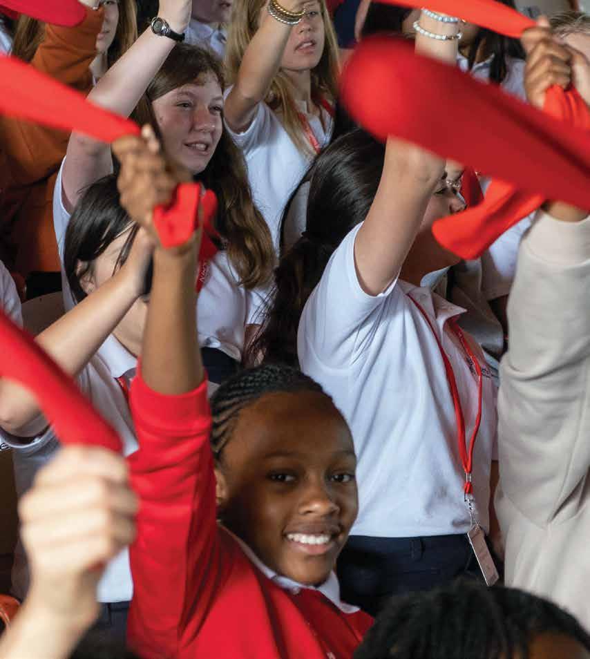 Since 1929, all Camp students have worn blueon-blue uniforms. While corduroy knickers and knee socks are traditional, today’s students pair their powder blue polos with color-coded division identifiers and navy pants, shorts, or skirts.