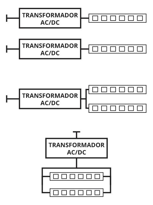 NOTA: La potencia del transformador elegido debe ser mayor que la de la tira a utilizar. (margen de 10%)