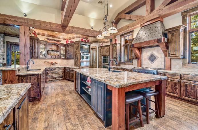 • Soaring vaulted ceilings with exposed beams, rich hardwood floors, and bespoke finishes create a timeless ambiance.