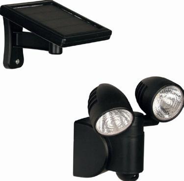 Luxform SOLAR SALTA PIR Luxform heeft binnen het assortiment Solar Intelligente Security verlichting een geweldige 2-kops wandlamp "Salta" met separaat solarpaneel. Het solarpaneel kan op een zonnige plek geplaatst worden en heeft een 3 meter lange kabel naar de wandlamp. Hierdoor kan de lamp op diverse plekken gemonteerd worden. De kunststof lamp wordt over een wandbevestigingsplaat geschoven die middels pluggen en schroeven op de wand gemonteerd wordt. Elke draaibare lampkop heeft 4 warm witte die samen 1000 licht geven bij activatie van de bewegingssensor. de lamp is een kan worden branden: of seconden.