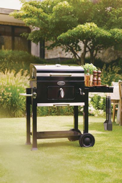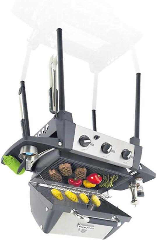 gietijzeren braadroosters, een chromé warmhoudrooster, roestvrijstalen Flav-RWaves™ en een elektronische ontsteking.