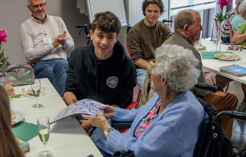 Leerlingen Campus Rozenberg maken levensboeken voor bewoners van woonzorgcentrum Ten Hove 11 leerlingen van het zesde jaar gezondheidszorg van Campus Rozenberg overhandigden op woensdag 28 mei levensverhaalboeken aan 11 bewoners van woonzorgcentrum Ten Hove. Dit warme initiatief, dat tot stand kwam in het kader van een schoolproject rond eenzaamheid, bracht jongeren en ouderen wekenlang intensief met elkaar in contact. Via diepgaande gesprekken bundelden de leerlingen de levensverhalen van ‘hun’ bewoner in een persoonlijk boek vol herinneringen, foto’s en anekdotes. Het project zet oprechte aandacht en verbondenheid in de kijker.