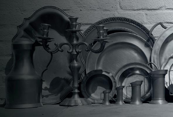 borden - soepterrines maatbekers - bestekken kandelaars - tinsoldeer tinbaren - ...