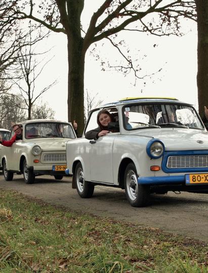 ons enthousiast in zijn evenementen- en horecabedrijf. Tijdens onze trip van Landal naar de Kurversweg in Meijel zijn we zowaar naadloos de Limburgse grens overgestoken. Rudy overhandigt ons de sleutels van een oude legerjeep en een eigenlijk nog meer vintage Trabant. Met dit Oost-Duitse freakje op vier wielen tuffen we door de ongerepte natuur en proeven de indrukwekkende verhalen van Rowwen Heze, de tex-mex band die van hier afkomstig is en ook in België muzikale triomfen viert. We brengen een bezoek aan America, de woonplaats van Christiaan Rowwen Hesen en horen de mooiste nummers van de band waarvan de oorsprong in de Peel ligt. In de legerjeep uit de jaren 50 doen ze, aan de hand van het op waarheid gebaseerd verhaal uit het dagboek van ‘Truus Trines’, een spannende ontdekkingsreis naar de Tweede Wereldoorlog en de meest bijzondere plekjes van het Peelgebied. We parkeren beide vehikels voor Herberg de Morgenstond waar we smakelijk kennismaken met een klootzak, een knapzak, een Horster champignonpotje, rijstpap en een arretjescake met koffie. Ja, het leven in de Peel is waard geleefd te worden….