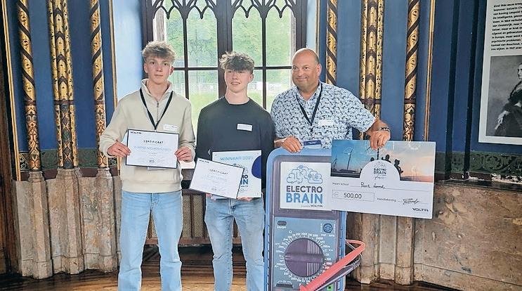 De eer viel hen te beurt bij Electro Brain+, een jaarlijkse wedstrijd die zich richt naar alle Vlaamse scholen met een opleiding in elektriciteit. Ze daagt leerlingen uit om niet alleen hun technische kennis toe te passen, maar ook hun probleemoplossend vermogen en praktijkinzicht aan te wenden. Hiervoor krijgen ze realistische en praktische uitdagingen uit de sector voorgeschoteld. De spannende finale vond plaats in de Plantentuin van Meise waar de deelnemers een technisch vraagstuk moesten oplossen rond de veiligheid en het vermogen van een containerpers. “Dankzij een voorbereidend bedrijfsbezoek aan AJK Containers in Bocholt konden de leerlingen hun antwoorden staven met