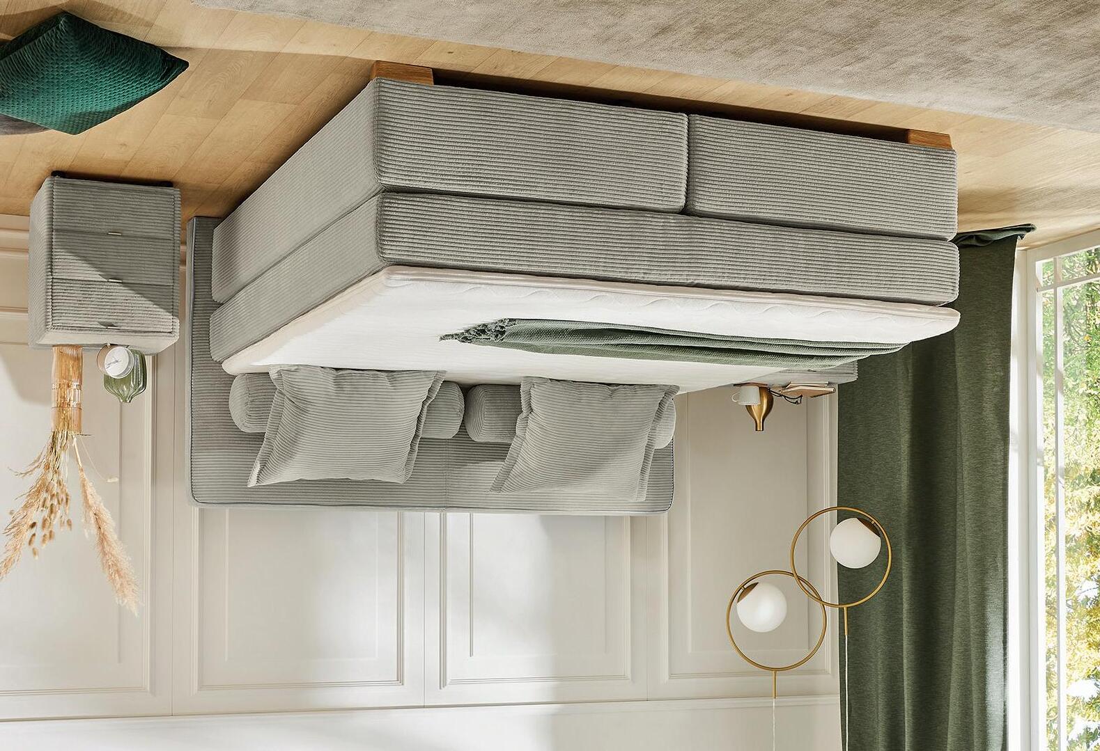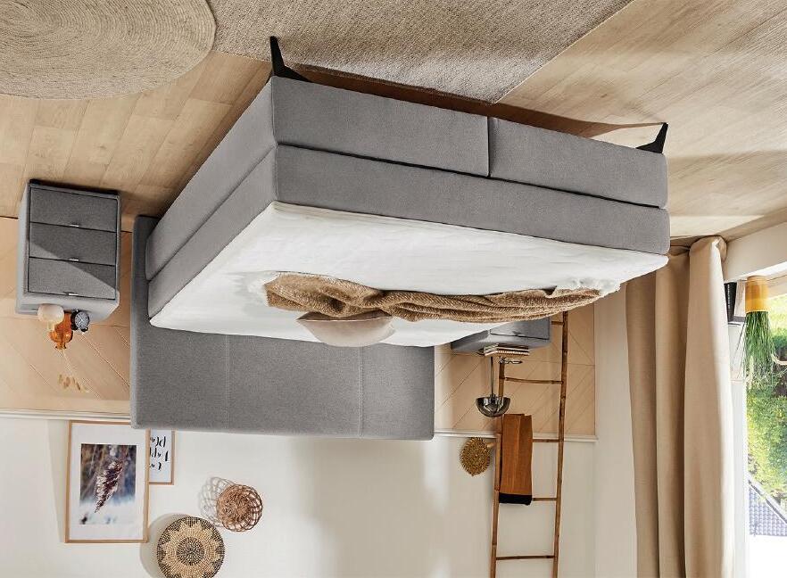 * Original-boxspring van 160 x 200 cm, laag, stofgroep A, vlakke box met 2 spiraalbodems en 2 Inizio-matrassen, zonder hoofdbord.