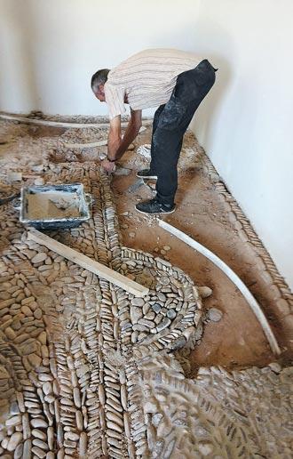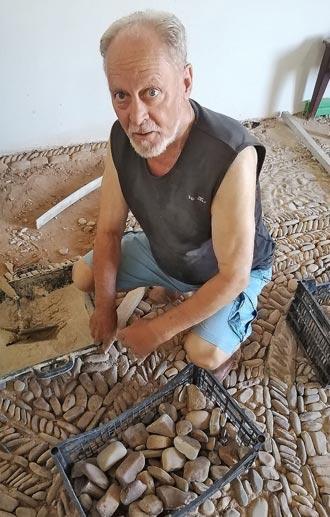 El mosaico de guijarros del suelo de la ermita de la Soledad y Vera Cruz se ha restaurado. Ha sido un trabajo com plejo y muy laborioso que se ha lle vado a cabo desinteresadamente y durante todo el verano por Ricardo, en la labor de maestro de obra, acom pañado de Tere, Ceci, Leandro, Pepe y Marcos. Piedra a piedra han ido con feccionando fielmente de nuevo el mosaico que presentaba un deterioro considerable por el implacable paso del tiempo. Las fotografías que se pre sentan en esta página ofrecen una pequeña visión de la magnitud de la obra. Para disfrutar del espectacular mosaico de guijarros hay que ir y ver personalmente el resultado final de como decimos fue un arduo pero gra tificante trabajo que quedará por siglos.